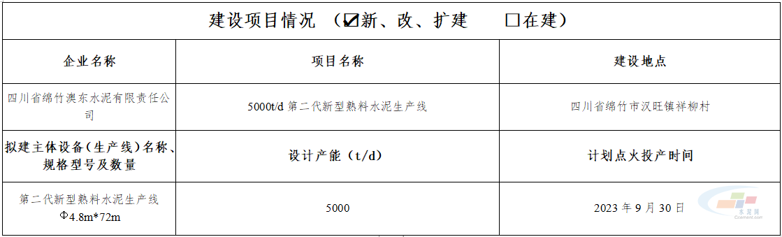 關于四川省澳東水泥5000t/d水泥熟料生產線智能化升級改造項目有關情況的公示